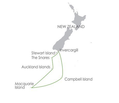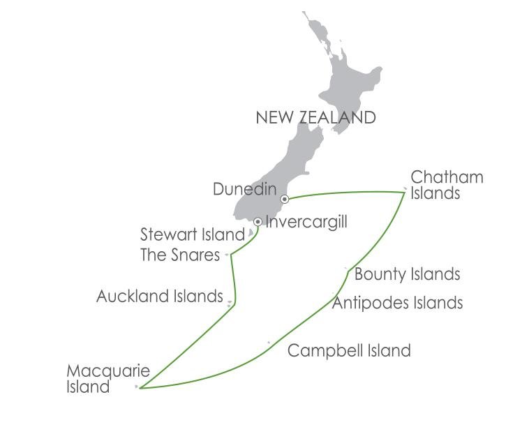 Hinweis: Während unserer Reise können die Umstände es erforderlich oder wünschenswert machen, von der vorgeschlagenen Reiseroute abzuweichen. Dazu kann schlechtes Wetter gehören und und/oder Möglichkeiten für ungeplante Ausflüge. Ihre Expeditionsleitung wird Sie umfassend informieren. Landungen auf den subantarktischen Inseln Neuseelands sind nur mit Genehmigung der neuseeländischen Regierung möglich. Bei The Snares sind keine Landungen erlaubt.