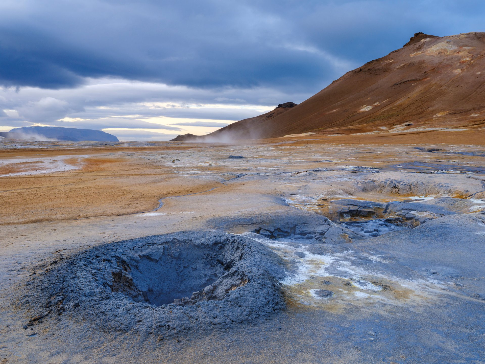Die Fahrt auf der geteerten Ringstraße nach Mödrudalur werden wir für einen weiteren Höhepunkt unterbrechen, dem Geothermalgebiet bei Namaskard. Fumarolen, Solfatare, blubbernder Schlamm und Felsen gelb vom Schwefel, alles begleitet vom typischen Geruch sind unsere Motive bei diesem Stopp.