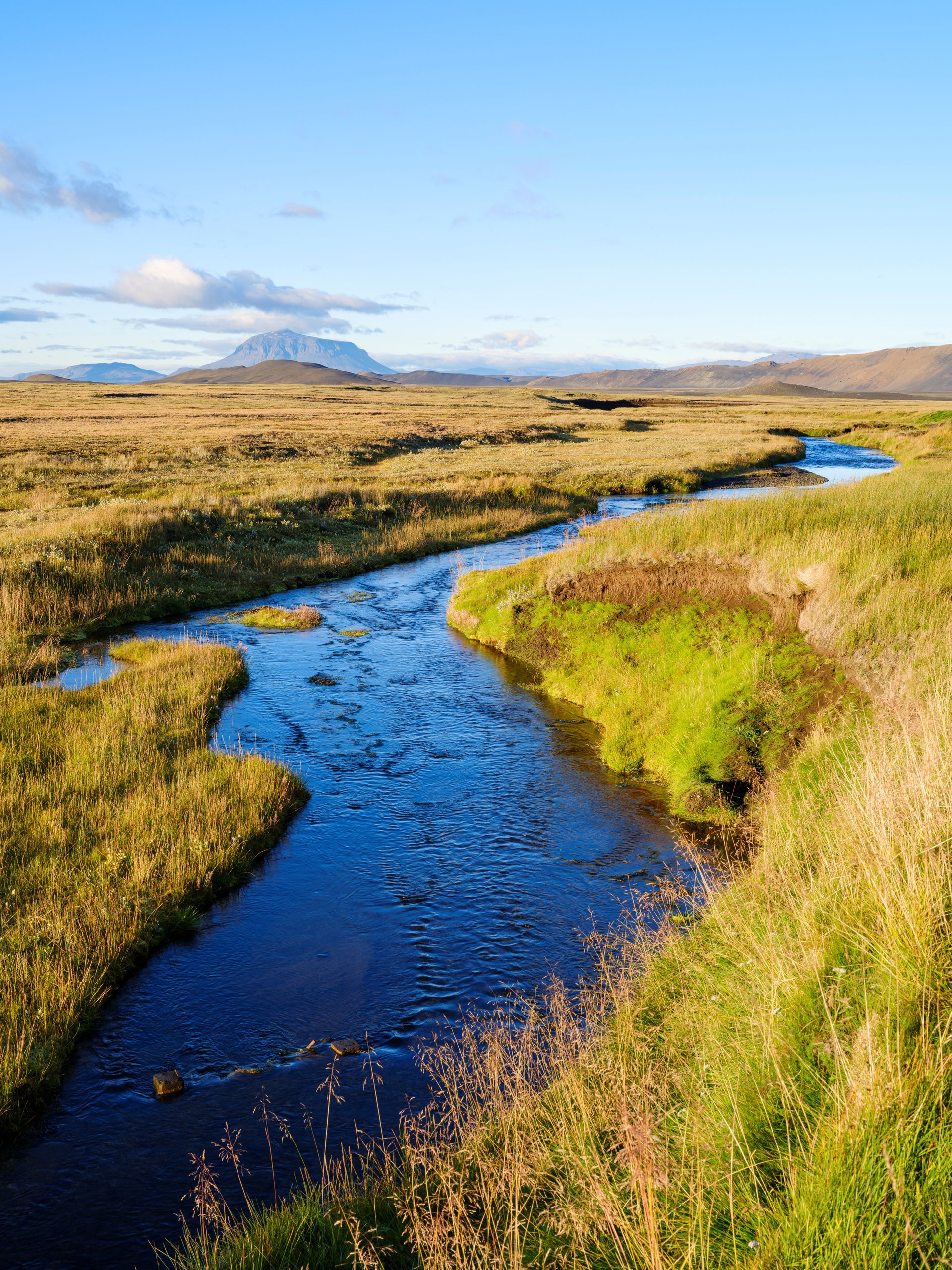 Wie auf der ganzen Tour entscheidet das Wetter, was wir wann in Angriff nehmen können oder wollen. Die berühmte Allrad-Piste (F-Road) Sprengisandur wird uns die ersten Eindrücke und Fotos des zentralen Hochlands ermöglichen. Dieser Teil der Sprengisandur bietet neben der wüstenhaften Landschaft zwei sehr fotogene Wasserfälle, die deutlich weniger besucht sind als der Godafoss. Auf dieser Piste ist der Weg das Ziel! Wie weit wir kommen können, bestimmen die Wetterverhältnisse.