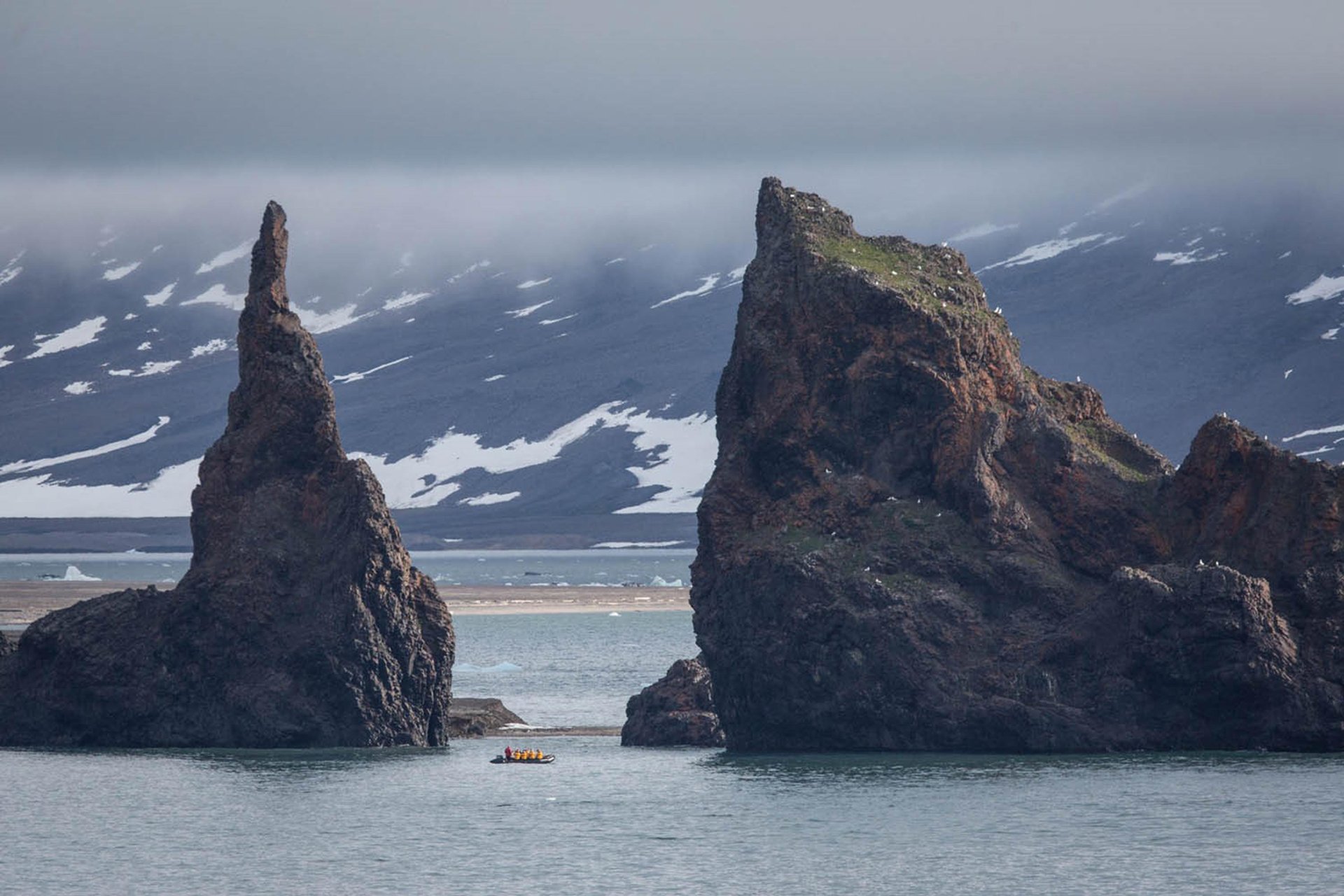 Nördlich von Nowaja Semlja liegen die Oranskie-Inseln. Es gibt dort eine Vielzahl von Tieren und Pflanzen zu entdecken. Die Walrossliegeplätze bieten ein unvergessliches Spektakel. Diese Giganten der Arktis erzeugen einen gewaltigen Lärm, während jeder um einen Liegeplatz wetteifert. Wir können hier Wale und Seevögel sichten sowie auch Eisbären, die zu einer genetisch unterscheidbaren Sub-Population dieser Region gehören.