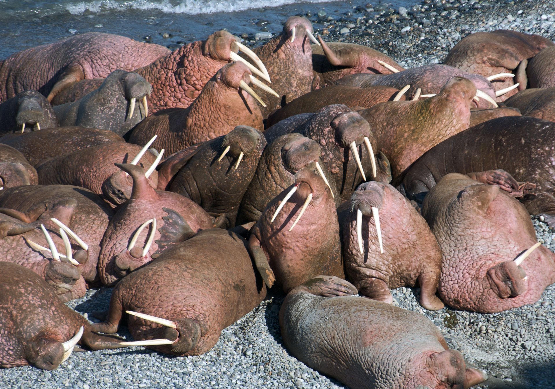 Heute Nachmittag planen wir eine Kreuzfahrt zur Insel Arakamchechen nördlich von Cape Chaplino und durch die 8 Kilometer breite Senyavina Strait vom Chukotka-Festland getrennt. Nachdem wir zuvor Grauwale beim Fressen beobachtet haben, empfehlen wir Ihnen, an Deck zu bleiben, während wir langsam durch die Meerenge fahren. Auf der Insel Arakamchechen erkunden wir die üppige Tundra und, wenn sie vorhanden sind, sehen Sie sich den Landungsplatz der Walrosse an.
