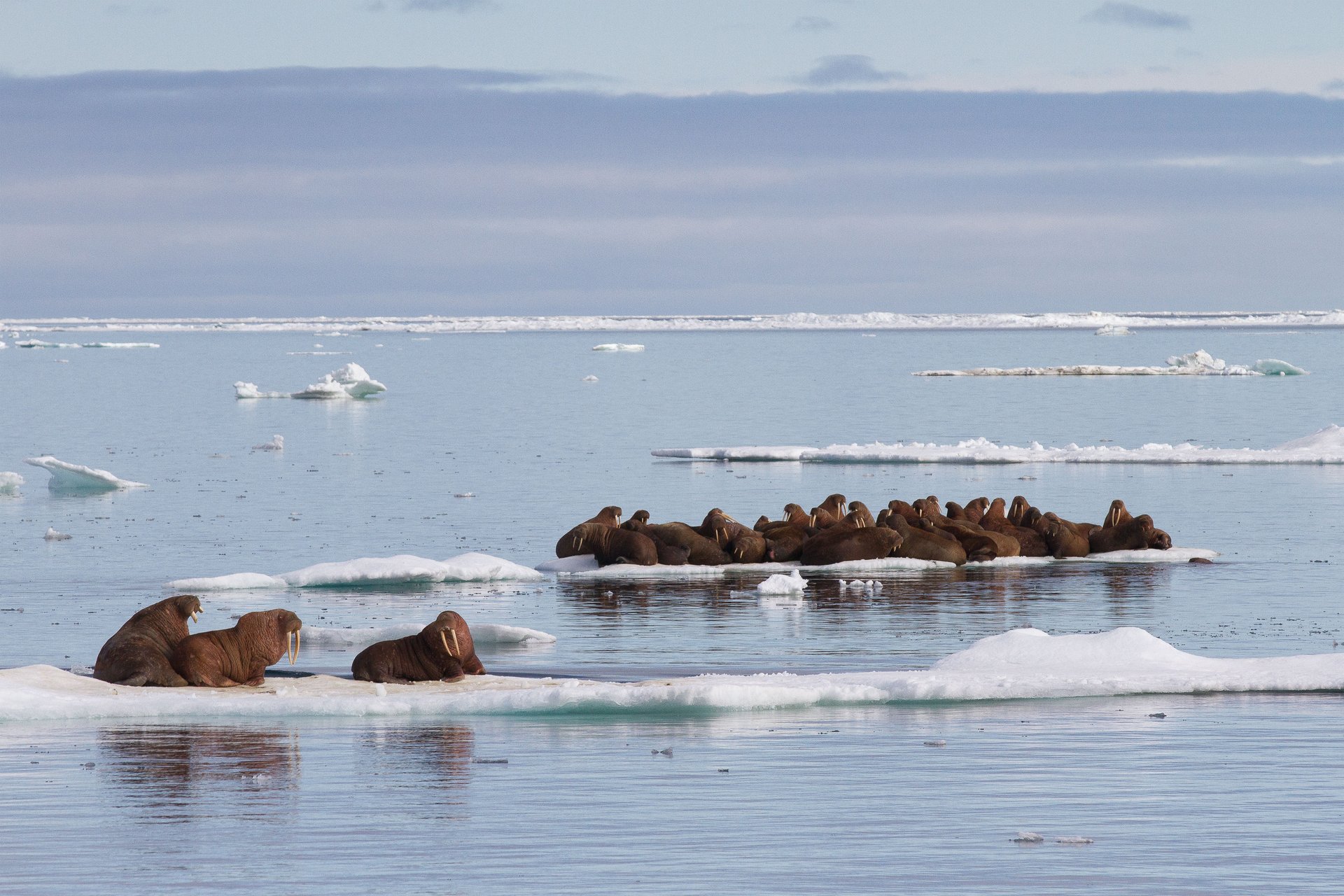 Heute ist ein Expeditionstag, an dem wir die Insel Koljutschin und den Meeresarm besuchen möchten. Diese kleine Insel war einst Standort einer wichtigen russischen Polarforschungsstation und wurde nach dem Zusammenbruch der UdSSR verlassen. Während die Gebäude jetzt verfallen sind, gibt es immer noch die reiche Tierwelt, die dort untersucht wurde. In der Nähe der alten Station am nordwestlichen Ende der Insel befinden sich einige der schönsten Vogelklippen der Arktis, wo man nur wenige Meter entfernt Papageientaucher, Trottellummen, Möwen und Kormorane beobachten und fotografieren kann. Am südöstlichen Ende versammelt sich oft eine Menge an Walrossen und wenn die Tiere anwesend sind, können Sie von den Zodiacs hervorragende Fotomöglichkeiten erwarten.