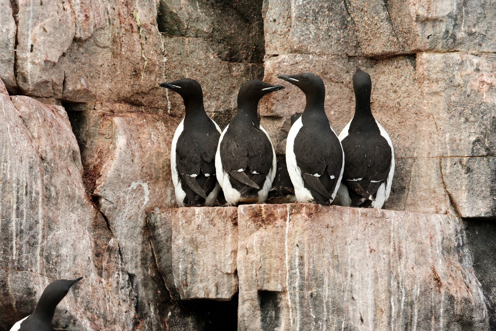 Eissturmvögel, Dreizehenmöwen und Dickschnabellummen brüten in den steilen Felsen von Jan Mayen.