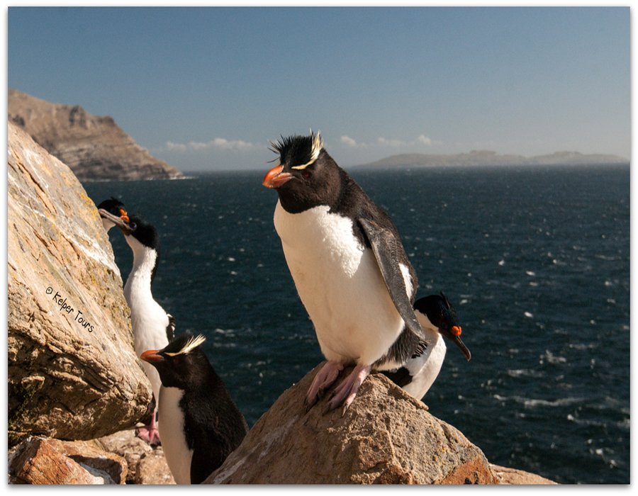 - Rockhopper-, Magellan- und Gentoo-Pinguinkolonien
