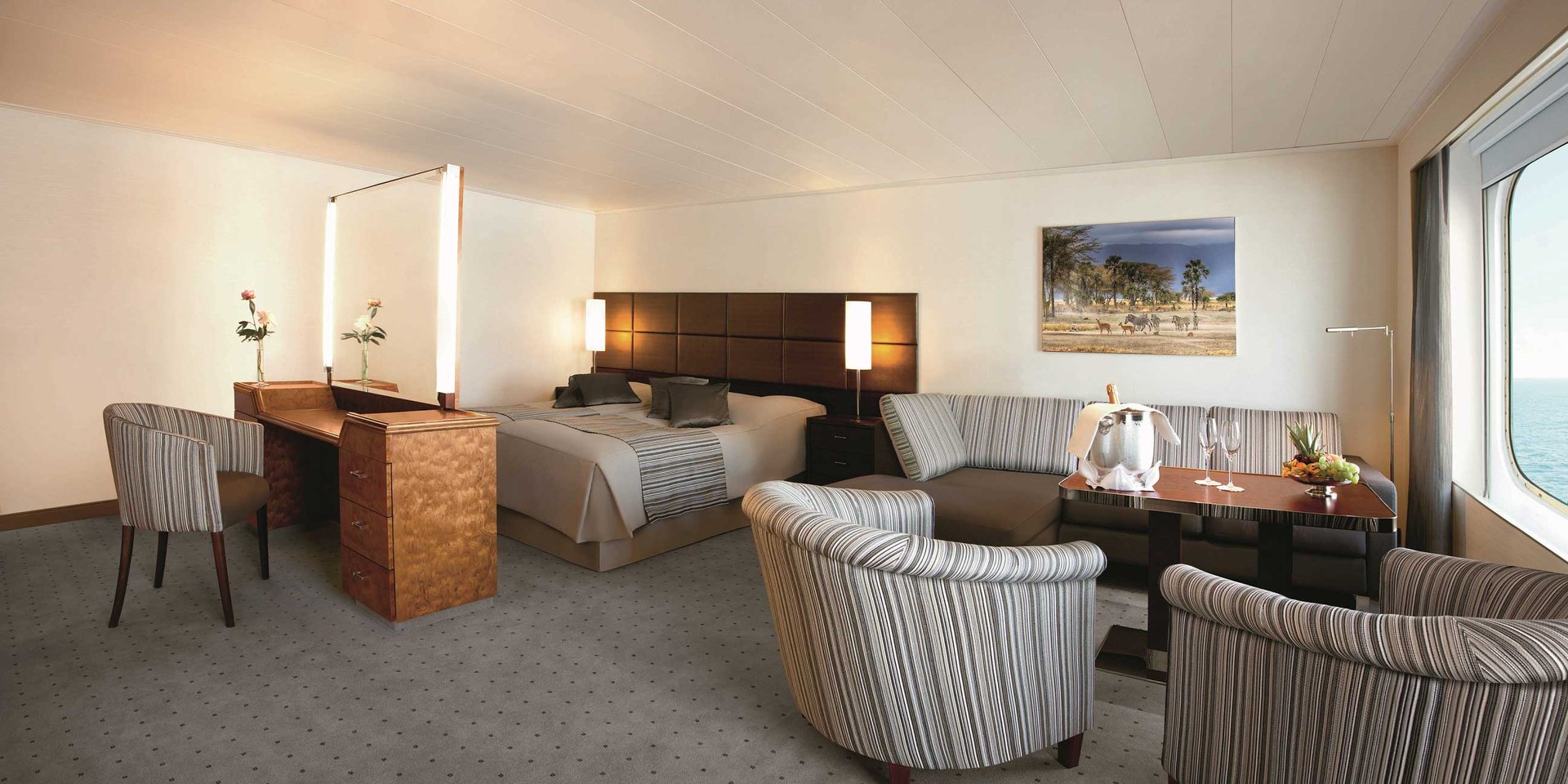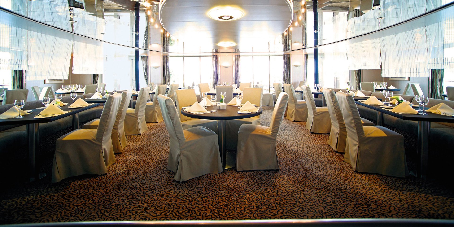 An Bord entdecken Sie geräumige, gut ausgestattete Unterkünfte, besuchen die Crew auf der Brücke mit unserer Open Bridge Politik, speisen Sie internationale Gourmet-Küche in zwei Restaurants und beenden den Tag in der Bar und Lounge, die Observation Lounge bietet 270-Grad-Ansichten. Oehen Sie nach draußen auf die stilvollen offenen Decks und nutzen Sie zahlreiche wettergeschützte Plätze einschließlich des weitläufigen Bereichs hinter Deck 6.