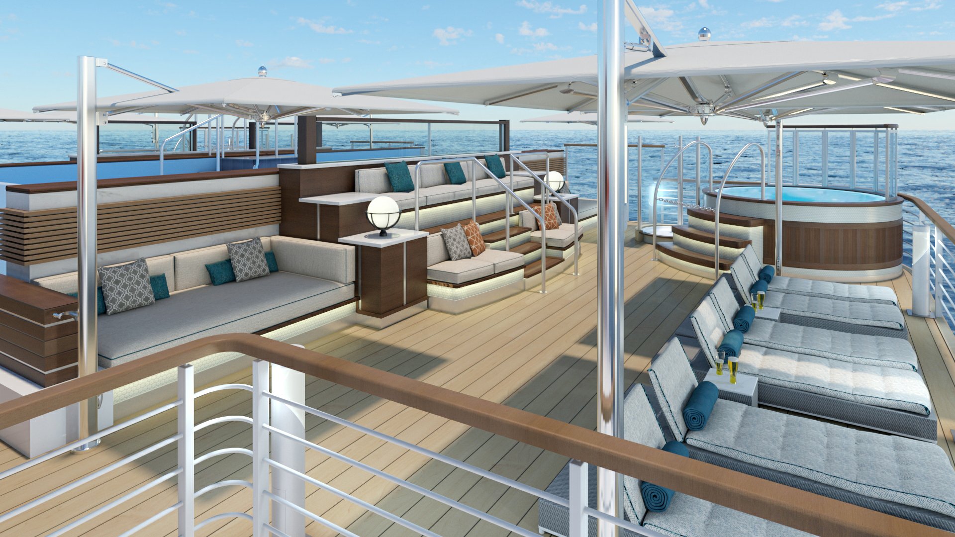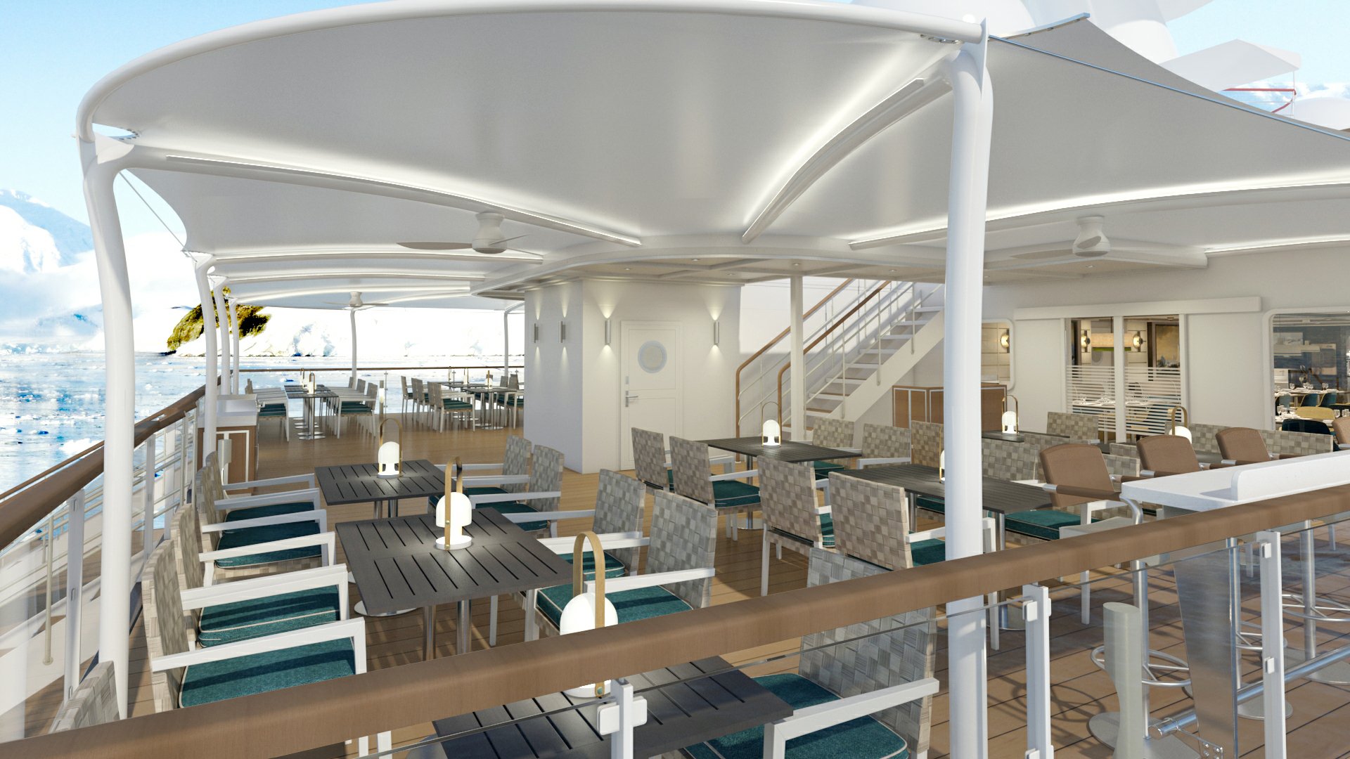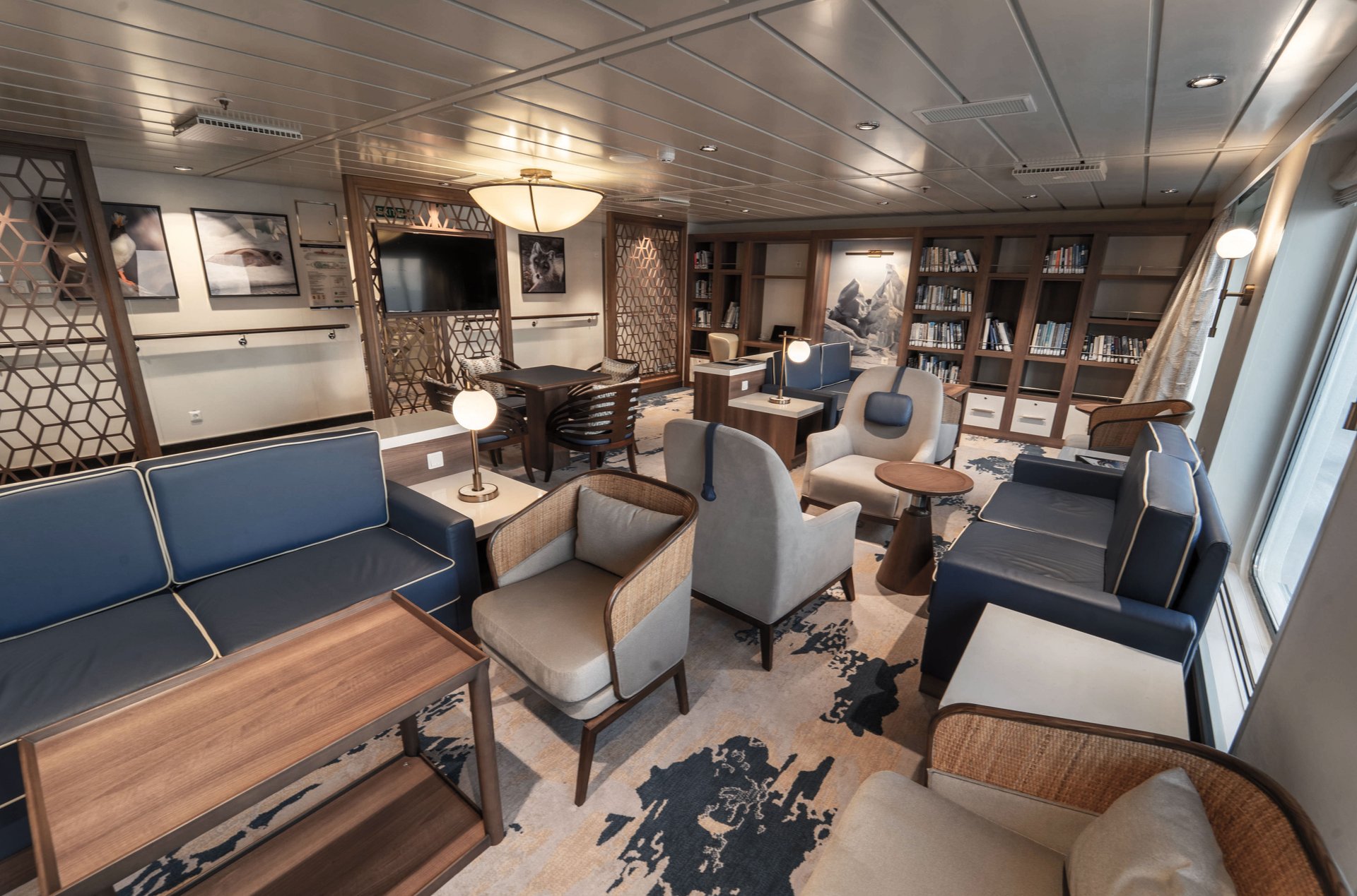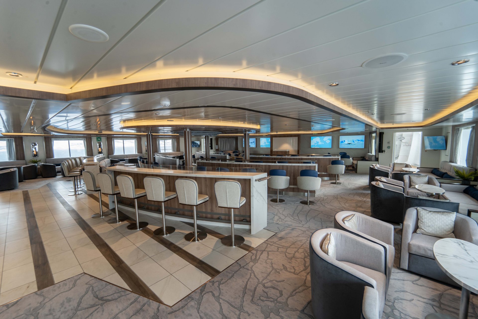 Während Sie das Schiff erkunden, finden Sie Indoor-Lounge-Bereiche mit raumhohen Fenstern und Panoramablick sowie mehrere offene Decks mit weitläufigen 270-360-Grad-Ansichten. Es gibt keinen Mangel an Platz, um die Majestät der unglaublichen Welt draußen zu genießen!
