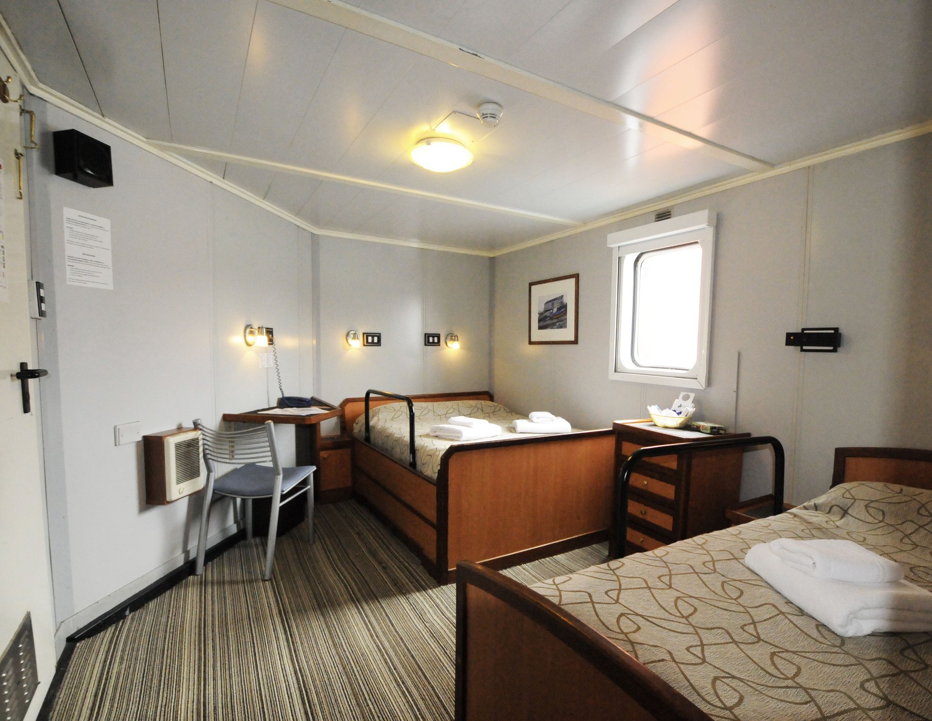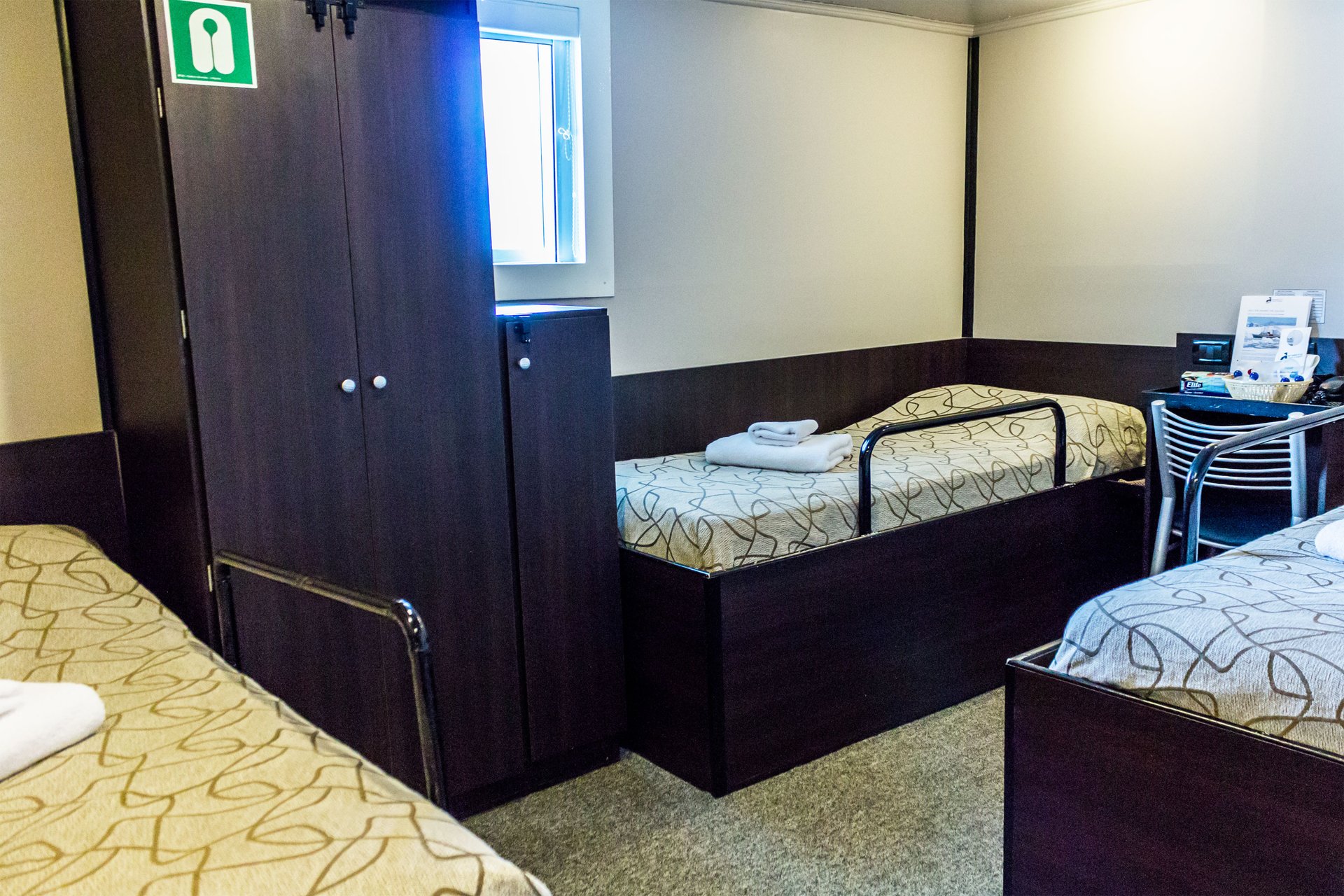 Alle Kabinen verfügen über genügend Stauraum. Unser Restaurant ist gross genug, um allen Gästen gleichzeitig Platz zu bieten. Zudem verfügt die MV Ushuaia über eine große Panorama Lounge, eine mit modernster Technik ausgestatteten Multi-Media Lounge, Bar sowie eine gut bestückte Polarbibliothek. Das Schiff bietet auch eine kleine Krankenstation.