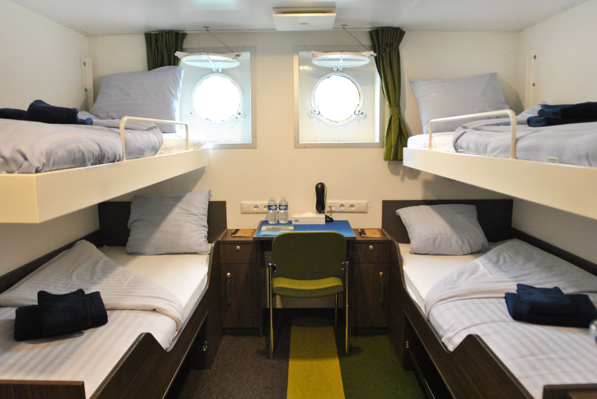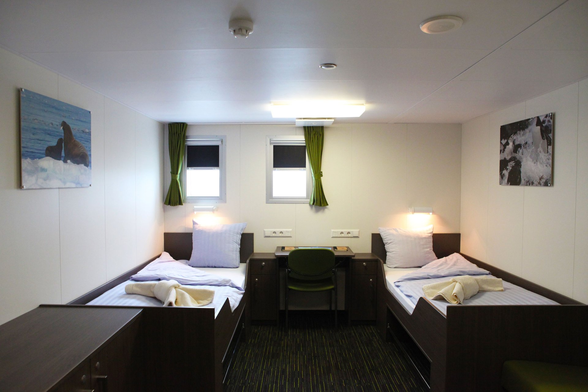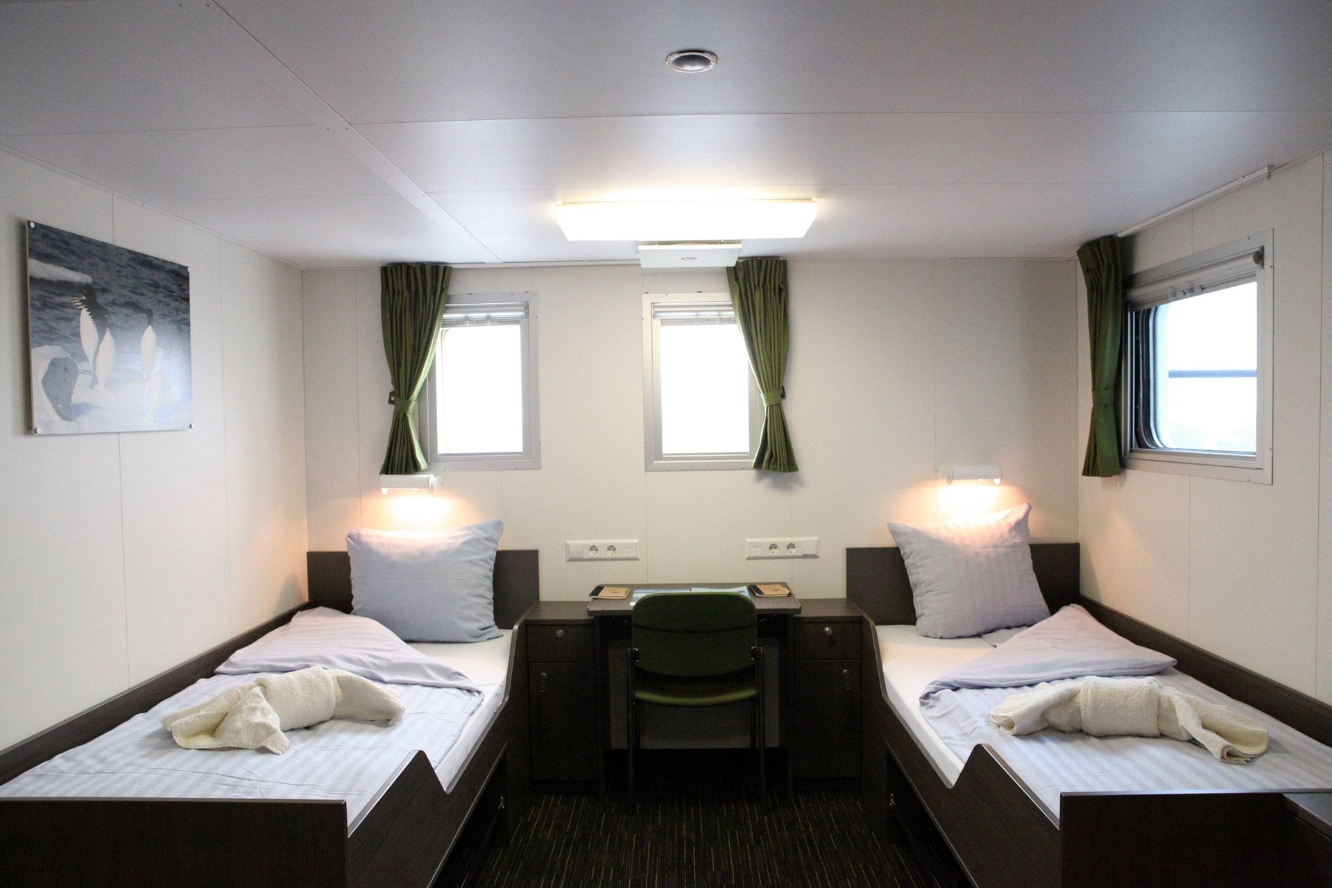 Bitte beachten Sie, dass eine kleine Anzahl von Kabinen eine teilweise verstellte Sicht hat aufgrund der Größe der Fenster und das Design-Anforderungen des Schiffs. Zum Beispiel kann die Ansicht von einigen Fenstern teilweise durch die Gangway behindert werden. Die beste Aussicht ist immer auf dem Außendeck oder der Brücke. Unsere Reisen haben das Ziel, Ihnen ein hochwertiges und informatives Erkundungsprogramm von Landschaft und Tierwelt zu bieten und möglichst viel Zeit an Land zu verbringen.