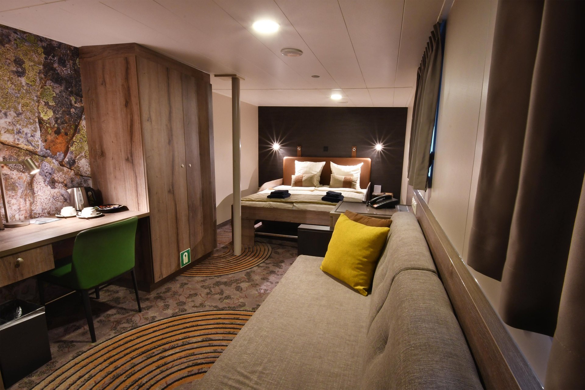 Bitte beachten Sie, dass eine kleine Anzahl von Kabinen eine teilweise verstellte Sicht hat aufgrund der Größe der Fenster und das Design-Anforderungen des Schiffs. Zum Beispiel kann die Ansicht von einigen Fenstern teilweise durch die Gangway behindert werden. Die beste Aussicht ist immer auf dem Außendeck oder der Brücke. Unsere Reisen haben das Ziel, Ihnen ein hochwertiges und informatives Erkundungsprogramm von Landschaft und Tierwelt zu bieten und möglichst viel Zeit an Land zu verbringen.