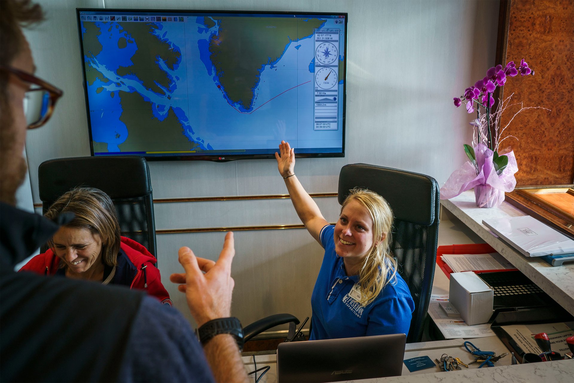 Zu den frei zugänglichen Bereichen gehören: Rezeption, Restaurant, Bar, Bistro im Freien, Club Lounge, Bibliothek, Vortragsraum, Krankenstation, Fitnessraum und die Brücke. Auf der Brücke der MV Sea Spirit sind alle willkommen: Unterhalten Sie sich mit dem Offiziers- und Expeditionsteam, bestaunen Sie die vorbeiziehende Landschaft von dieser ganz besonderen Perspektive aus und entdecken Sie auf der Karte, in welcher Position sich das Schiff gerade befindet.